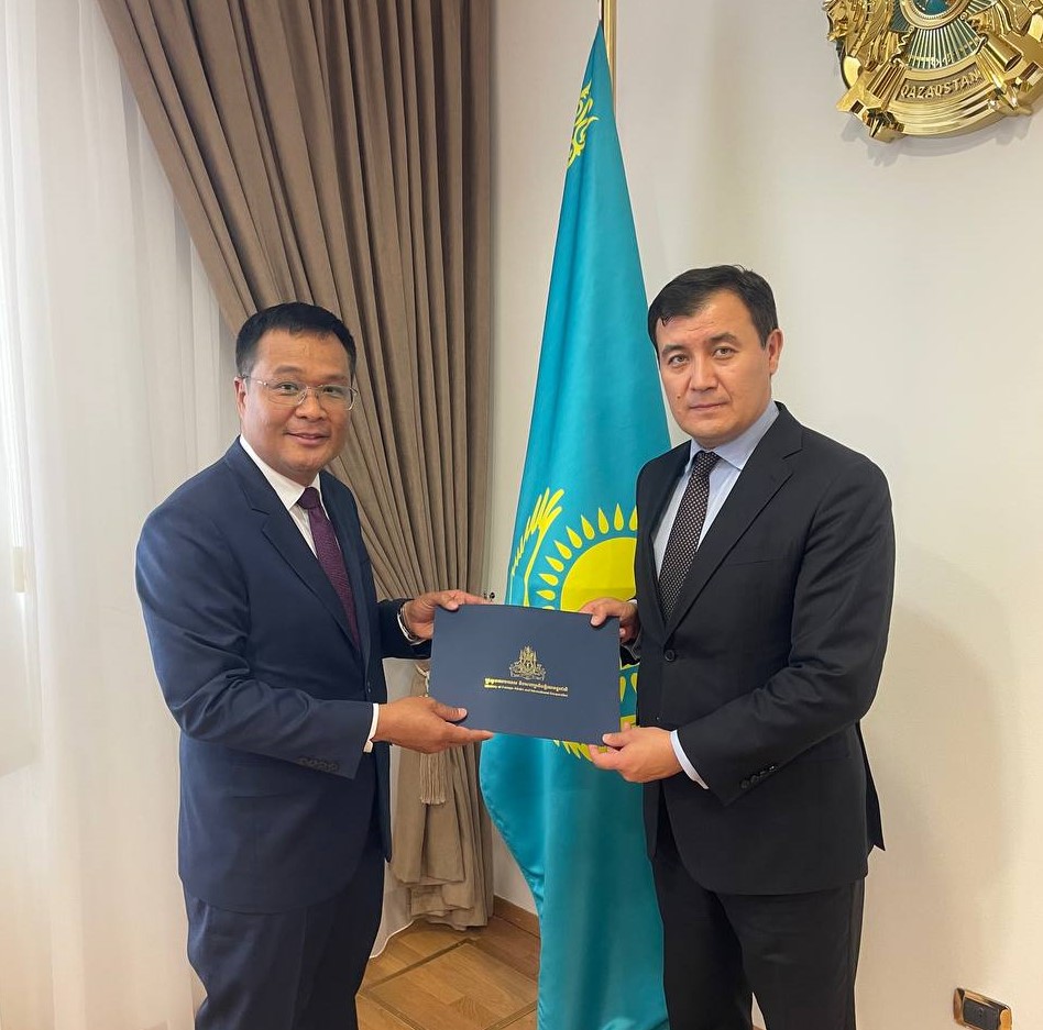 Қазақстан Республикасы Сыртқы істер министрінің орынбасары Әлібек Бақаев Қазақстанда қоса қызмет атқаратын Камбоджа Корольдігінің Елшісі Чеа Соктан сенім грамоталарының көшірмелерін қабылдады.