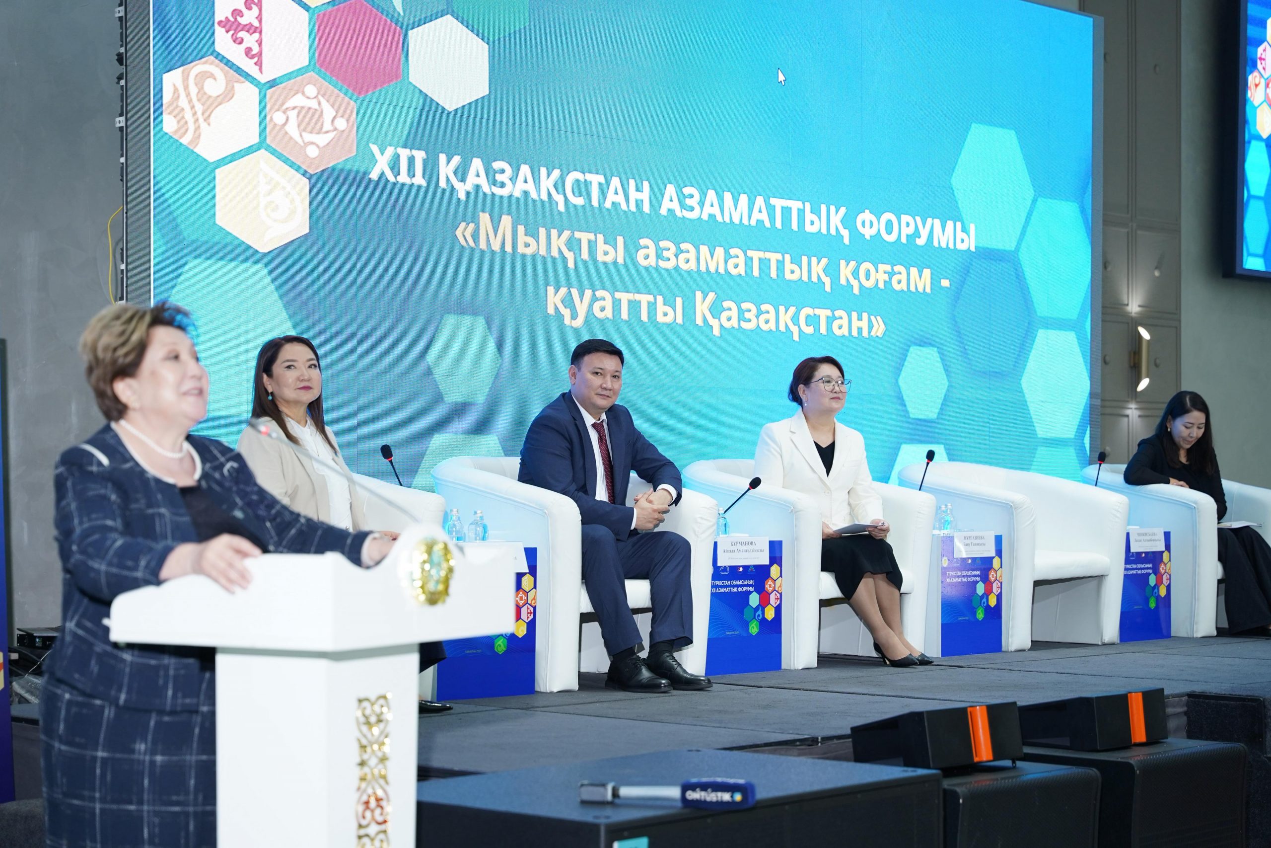 Жиында Қазақстан Республикасы Мәдениет және ақпарат вице-министрі Айзада Құрманов, «Қазақстанның Азаматтық Альянсы» заңды тұлғалар қауымдастығының президенті Бану Нұрғазиева, «Қазақстан халқына» қоғамдық қорының басқарма төрайымы Лаззат Чинкисбаева, Түркістан облысының құрметті азаматы, қоғам қайраткері Жамалбек Шәріпбеков мазмұнды баяндама жасап, азаматтық қоғамды дамытудағы орны мен маңызын қалыптастыру бағытындағы ой-пікір, ұсыныстарын ортаға салды.