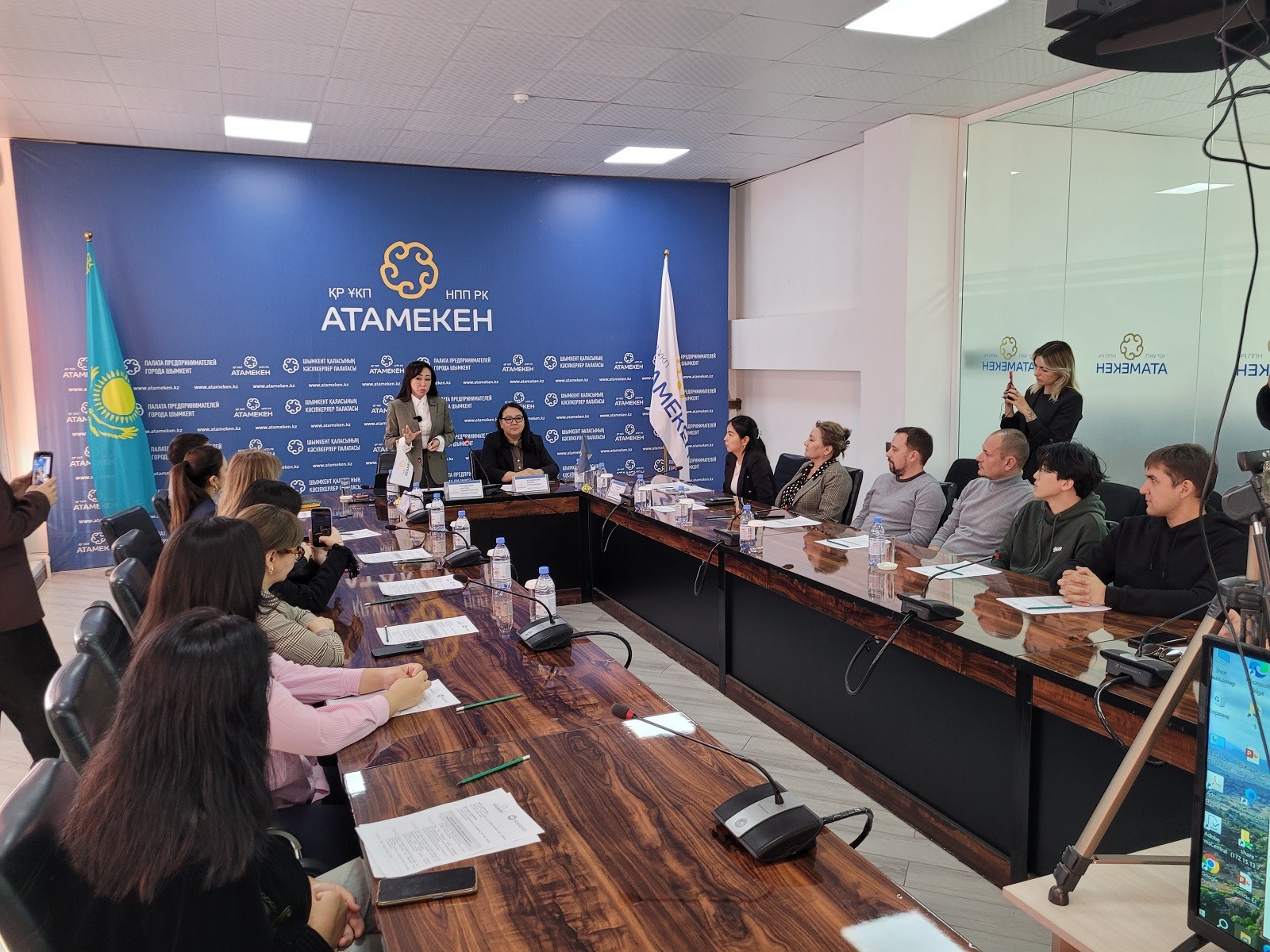 Шымкент қаласының кәсіпкерлер палатасында «Кәсіпкер әйел: алғашқы қадамдар» тақырыбымен семинар-тренинг өтті. Жиынға Палата директоры Сабира Адамбекова, Amanat партиясының қалалық филиалы жанындағы Әйелдер қанатының төрайымы Наргиза Керімбаева, Halyk Bank АҚ қалалық филиалы директорының орынбасары Айдос Келдібаев және Еңбек мобильділігі орталығы кәсіпкерлік бастамаларды оқыту және қолдау бөлімінің басшысы Гүлвира Даужанова және кәсіпкерлер қатысты.