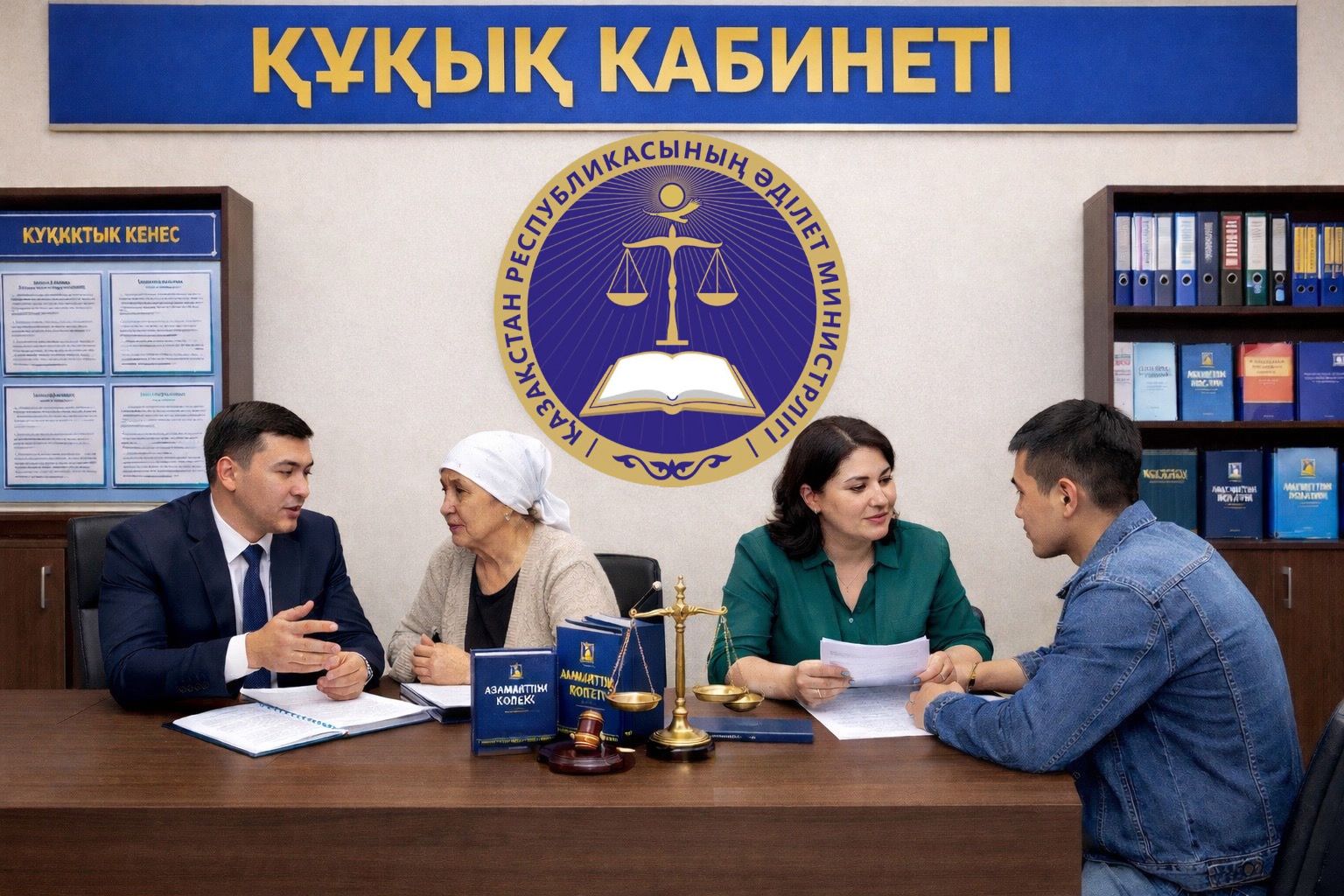 «Құқық кабинеті» – кез келген азаматтың құқықтық сұрақтарына жауап алып, қажетті кеңес алуына мүмкіндік беретін ашық алаң. Мұнда келушілер тек заңгерлік кеңес алып қана қоймай, заманауи цифрлық қызметтерді де пайдалана алады. Атап айтқанда, кабинетте «Әділет» және «Заң» құқықтық дерекқорларына қолжетімділік қамтамасыз етілген. Бұл жүйелер арқылы азаматтар қолданыстағы нормативтік-құқықтық актілермен танысып, өз құқықтары мен міндеттері туралы нақты ақпарат ала алады.